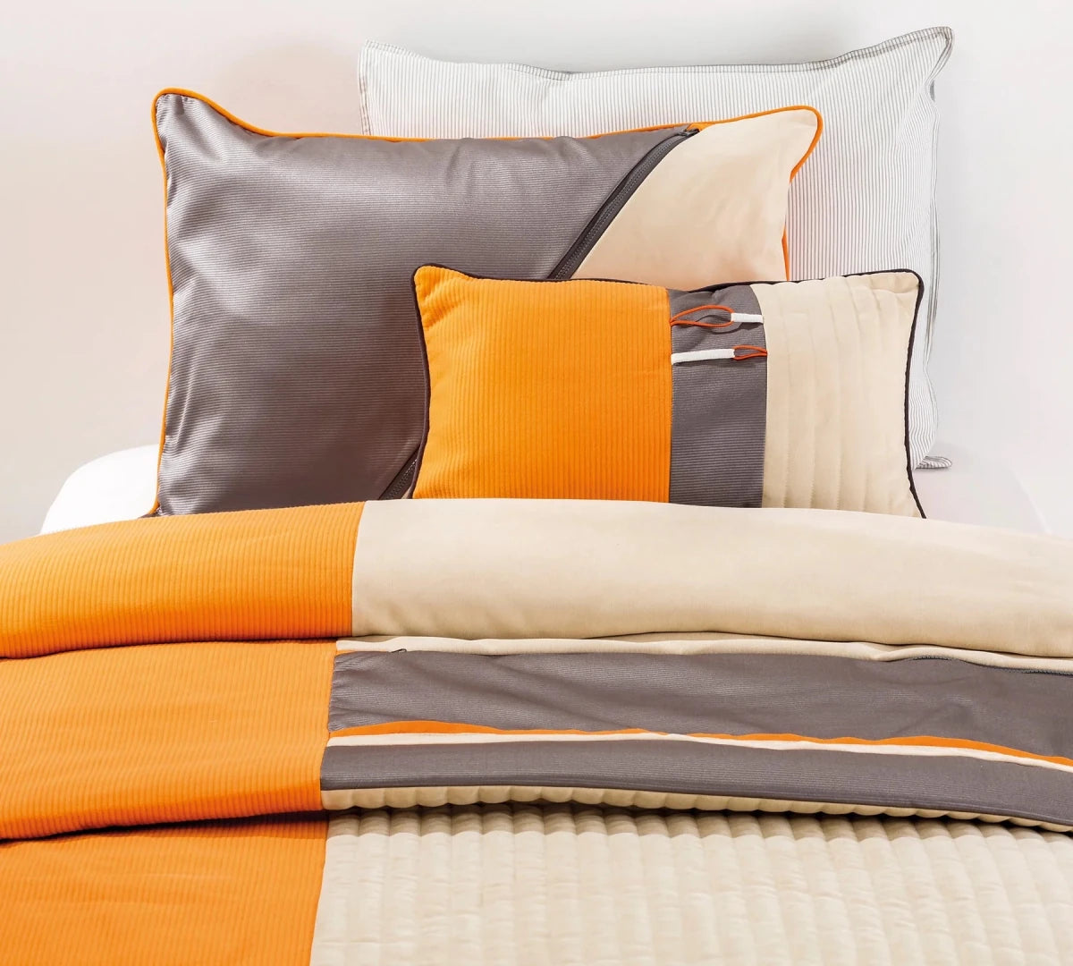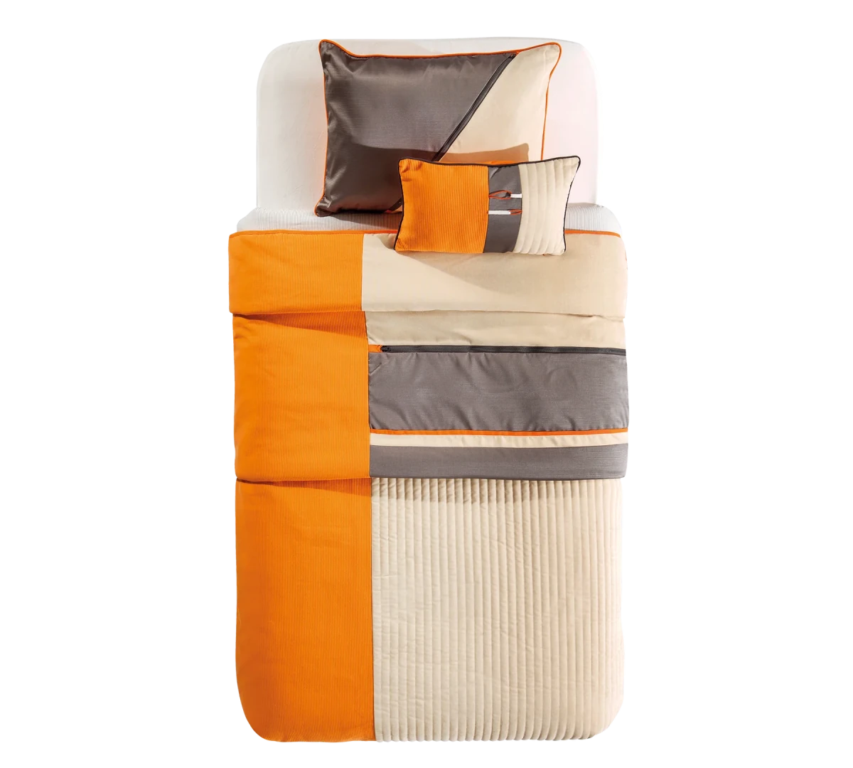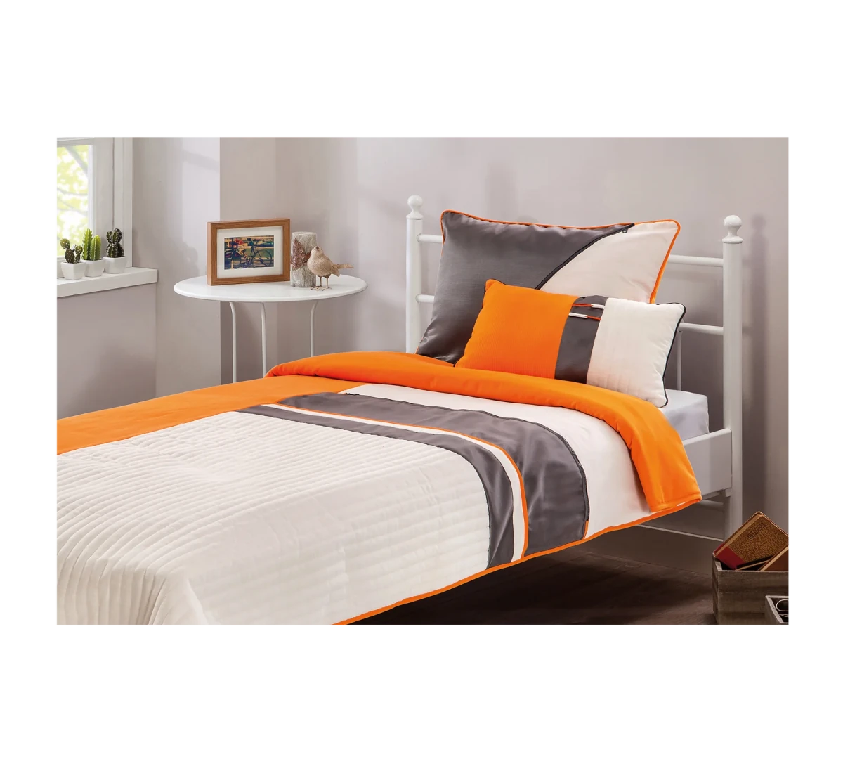 مفرش سرير الطاقة، الذي يستخدم أقمشة ذات خامات مختلفة، يجذب الانتباه بتصميمه الذي يهيمن عليه اللونان البرتقالي والأنثراسيت. يشتمل الطقم على مفرش سرير مقاس 140x200 سم ووسادة ذات طابع خاص ووسادة مزخرفة. يمكنك استخدام طقم مفرش السرير الذي يناسب عالم طفلك النشيط والحيوي، بمقاس الأسرة 120x200 سم.