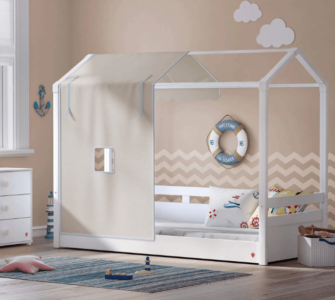 Montes White Roof Bed سرير بسقف+ستارة خضراء