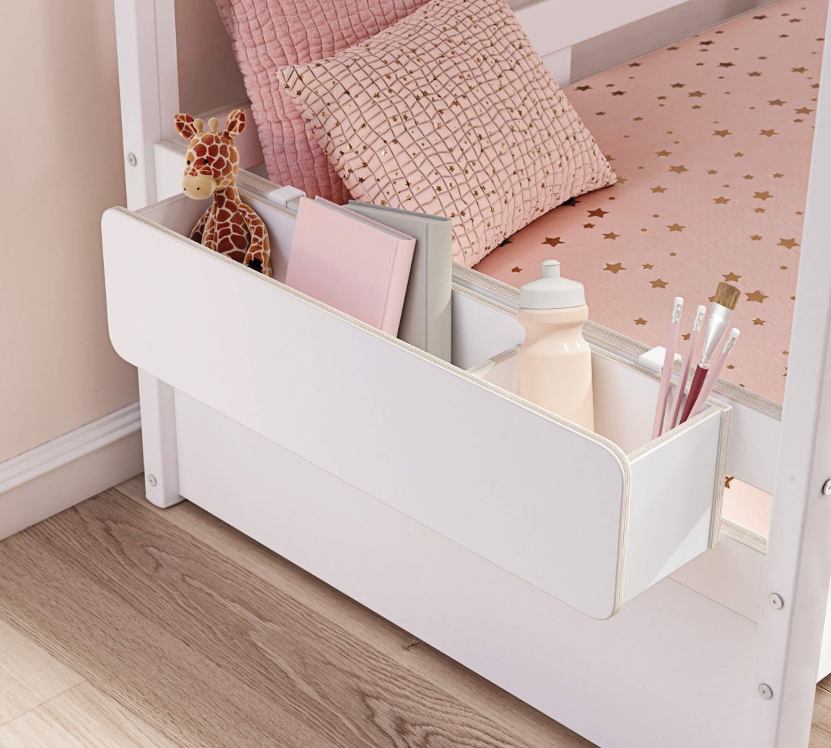 مع صندوق Montes White المتنقل، سيكون طفلك أكثر تنظيمًا الآن! يمكنك جمع الألعاب والكتب حول طفلك ووضعها معًا في الصندوق. يمكنك تعليق الصندوق على سرير طفلك إذا رغبت، بفضل الحامل الموجود في الخلف. لا داعي للقلق بشأن سلامة طفلك، حيث إن الزوايا الحادة للصندوق قد تم تنعيمها.