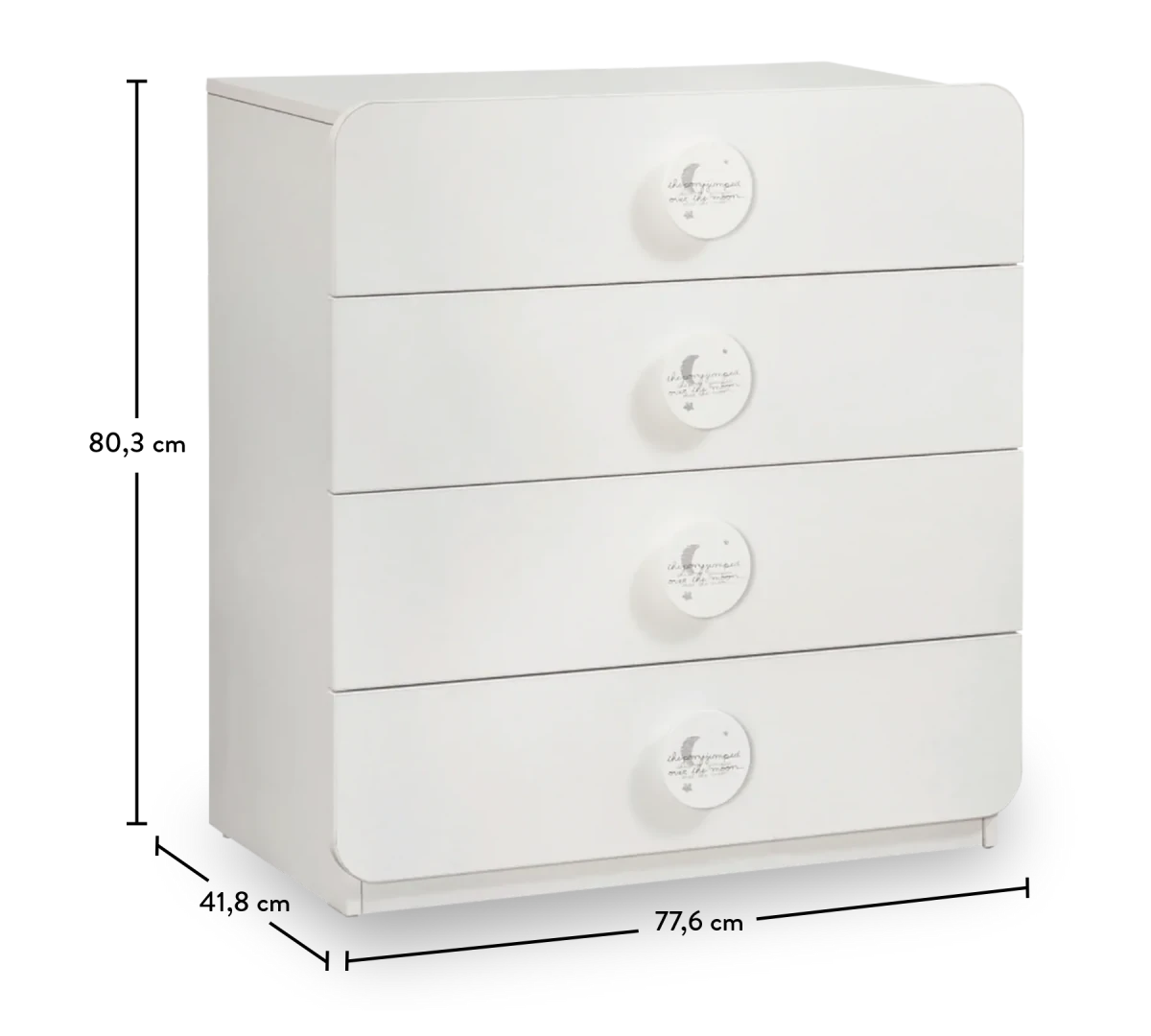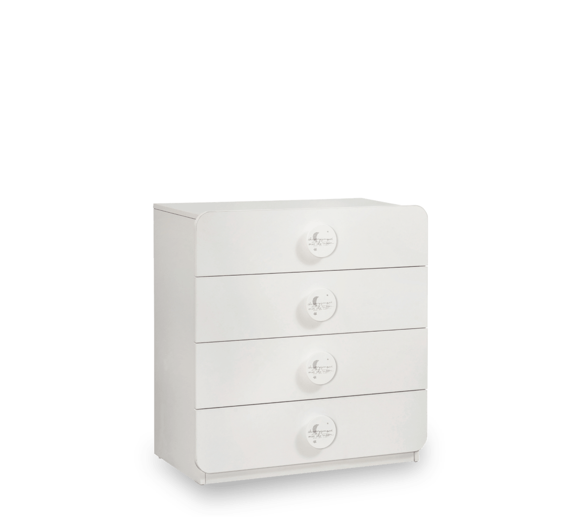 Baby Cotton SL Dresser is produced for your baby and his growing needs day by day. Thanks to its four large, compartmentalized drawers, small children's items such as socks and socks can be easily organized. Deep interior volume drawers provide high capacity storage space. The product, which adds a calm atmosphere to the child's room, is completed with decorative handles in harmony with their pure world. Designed with rounded corners for your child's safety, the Baby Cotton SL chest of drawers is one of the most preferred units in children's rooms .